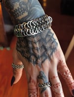 Square wire jump rings woven into a classic 6-in-1 chainmaille design.